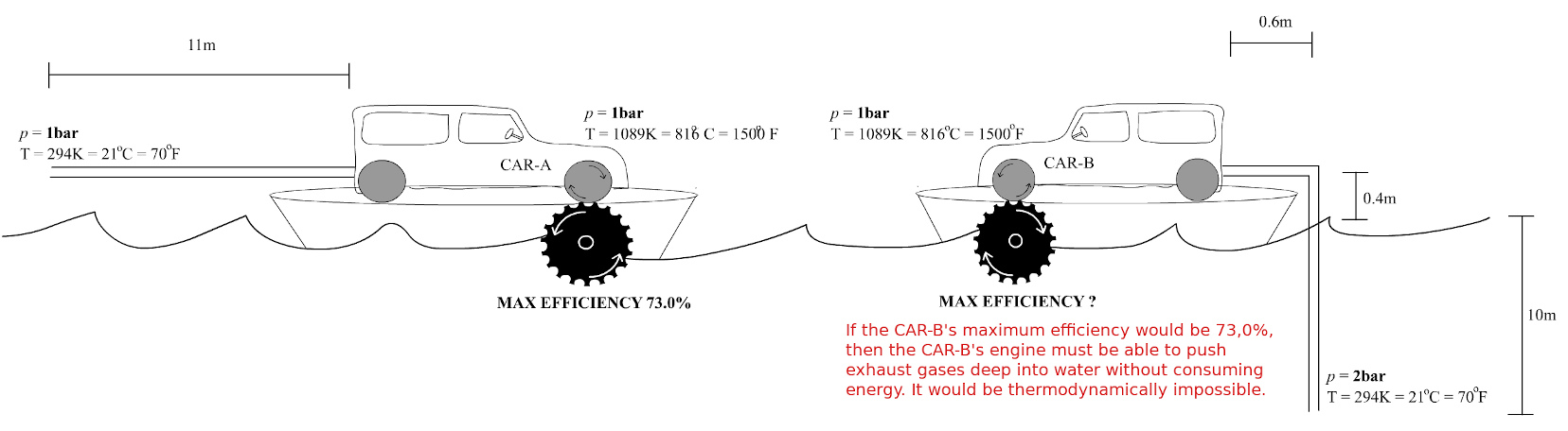 Evidence 2: Heat engine’s maximum efficiency percentage is equal to its entry side over-pressure percentage