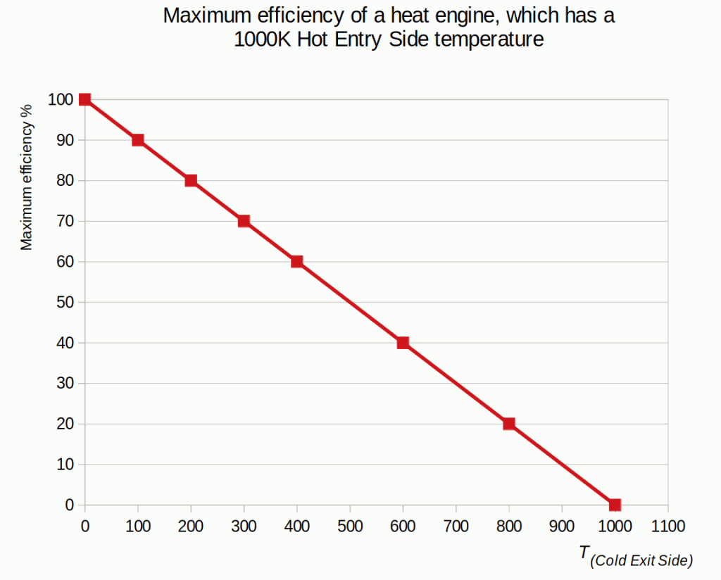 Ƞmax = ȠCarnot = 1 - T(cold-side) / T(hot-side)